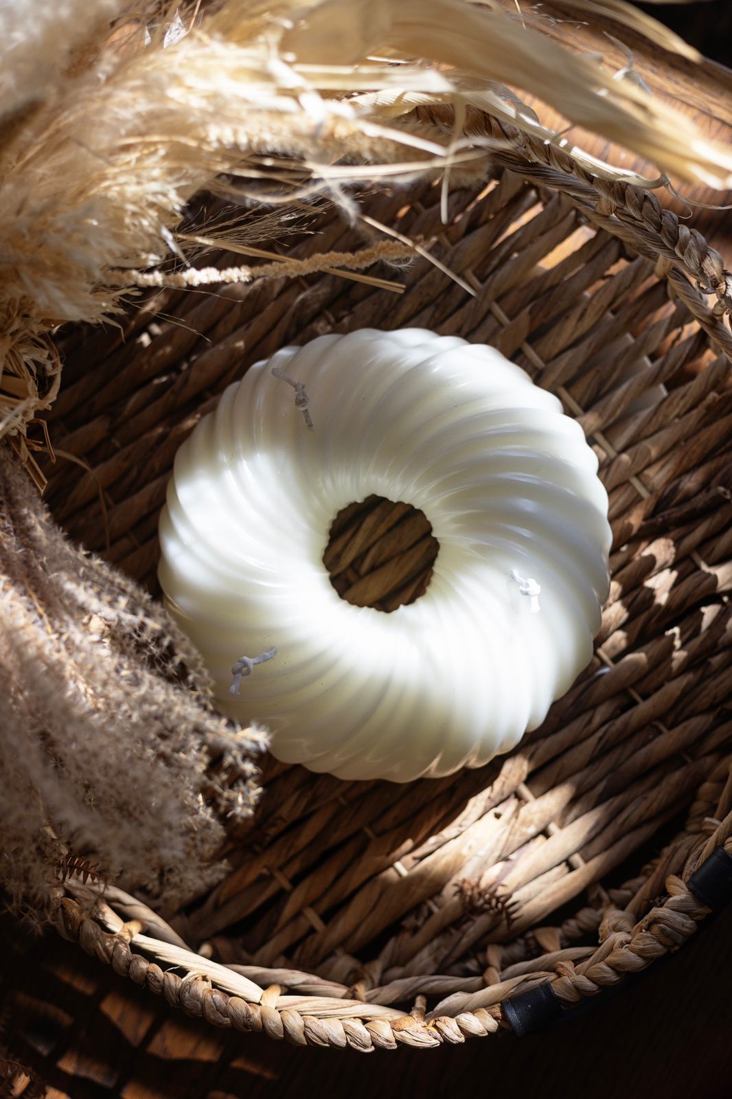 Enhance your decor with our elegant Halo Candle. Its unique circular design and ribbed texture, coupled with three wicks, provide an even and inviting glow. Crafted from premium-quality paraffin wax in a classic white hue, it's perfect for any occasion. Ideal for table settings, living rooms, or as a thoughtful gift.